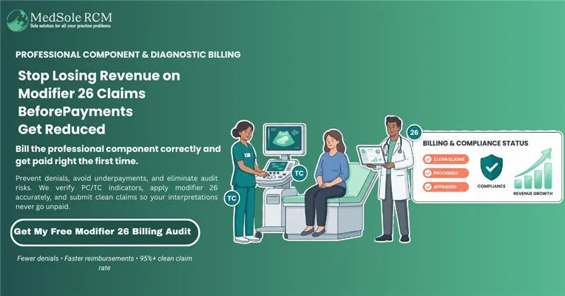 Struggling with PC/TC billing complexities? MedSole RCM's certified coding team handles modifier accuracy daily, ensuring your claims are clean from the start. Learn about our medical billing services →